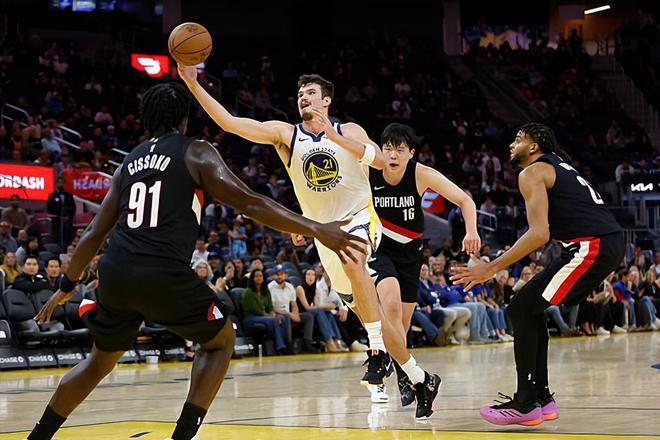 本场比赛中,勇士的先发中锋昆滕-波斯特(Quinten Post)的表现显然是不太理想的。波斯特全场出场16分35秒,投篮6中2,三分线外6中2,得到了6分3篮板2助攻1盖帽的数据,还有1次失误和1次犯规,正负值为+1。波斯特在进攻端没有展现出任何的篮下得分能力,他在外线投篮方面的稳定性也并不理想,他也没有展现出什么其他方面的作用。到了防守端,作为一名中锋,波斯特在篮板保护方面的能力也是非常有限的,而且他也缺乏足够的护筐能力和内线防守能力。至少在本场比赛中,波斯特在攻防两端都没有起到任何的效果,这也是他的出场时间如此受限的重要因素,他的表现确实是没有办法得到教练组的认可。