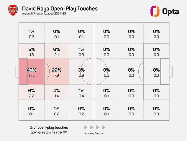 自拉亚加盟阿森纳以来,只有身高马大的大马丁在禁区内接住球的次数比他更多。而且,一旦拉亚拿到球,他往往会立即发动进攻——通常不是用脚,而是通过精准的手抛球。